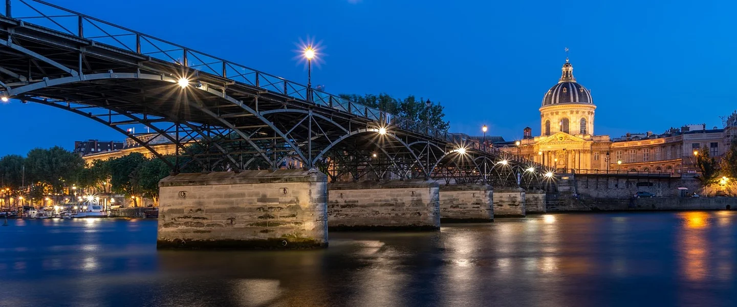 Den nuværende Pont des Arts er faktisk den anden bro, der bærer navnet. Den oprindelige bro blev bestilt af Napoleon I og åbnede i 1804 som den første metalbro i Paris. Den var et ingeniørmæssigt vidunder for sin tid med sine ni buer af støbejern, der skabte et let og elegant udtryk. I sin tidlige form var broen endda anlagt som en flydende have med buske og bænke, et yderst nyskabende koncept. Men tidens tand og adskillige kollisioner med pramme på Seinen tærede på konstruktionen, og i 1970’erne blev den erklæret usikker og delvist demonteret. Den moderne Pont des Arts blev genopbygget i en tro gengivelse af originalens arkitektoniske ånd, men med forbedret styrke og materialer, og genåbnede i 1984. I det 21. århundrede opnåede broen global berømmelse som “kærlighedslåsebroen”, hvor tusindvis af par fæstnede hængelåse til gelænderne som et symbol på evig kærlighed. Denne praksis, der startede i begyndelsen af 2000’erne, førte dog til bekymringer for broens struktur på grund af låsenes vægt, og i 2015 blev de ikoniske låse fjernet. Siden da er gelænderne blevet udskiftet med solide glaspaneler, der giver en uhindret udsigt over floden.